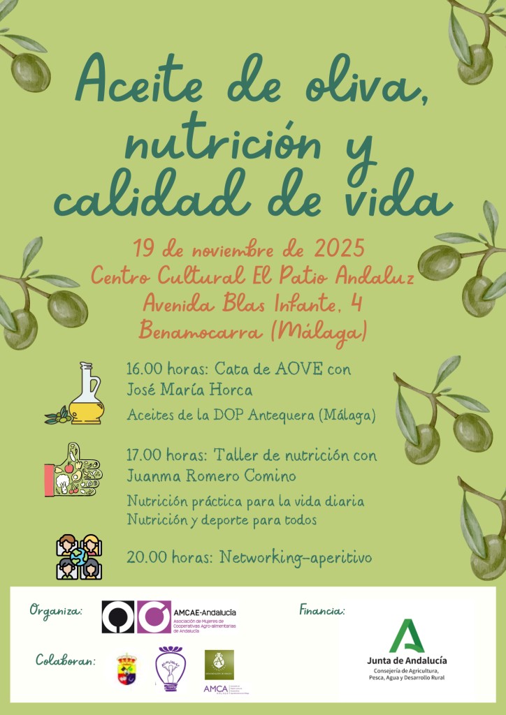 Aceite de oliva, nutrición y calidad de vida 19 Nov 2025 Compartir Más noticias10 Dic 2025Jornada demostrativa del uso de sensores en una explotación de olivarLeer más05 Dic 2025Jornada Iniciación y prompts de trabajoLeer más05 Dic 2025Mujer rural cooperativas en defensa del paisaje (Granada)Leer más